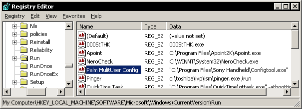 - That registry folder is where all the startup items that aren't in the Start menu reside. You might want to have a look at it to see what odd junk resides there, such as obnoxious system tray items like RealPlayer.